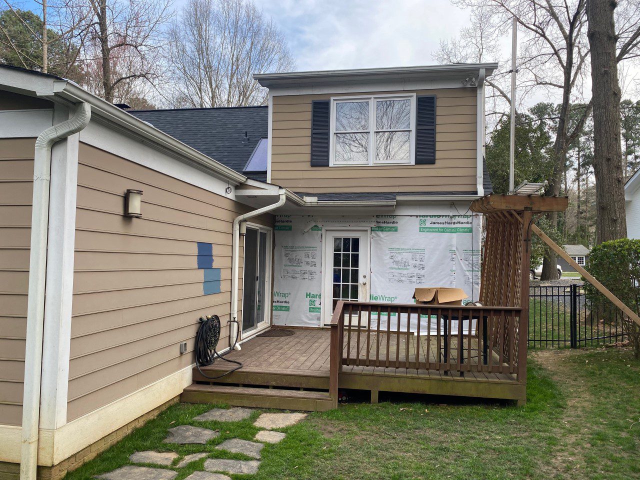 The home’s original siding was failing, and when this happens, it’s more than just a cosmetic concern. Siding that’s no longer doing its job to protect a house can lead to moisture damage and rot. We removed all the old siding and installed Hardie® Plank siding. What makes this product so unique is that it consists of fiber cement. That gives it so many advantages. It’s moisture-, insect-, and fire-resistant. Plus, it doesn’t react to humidity or weather changes, so it doesn’t contract and expand, which can cause cracking. It’s one of the most durable and reliable materials available.