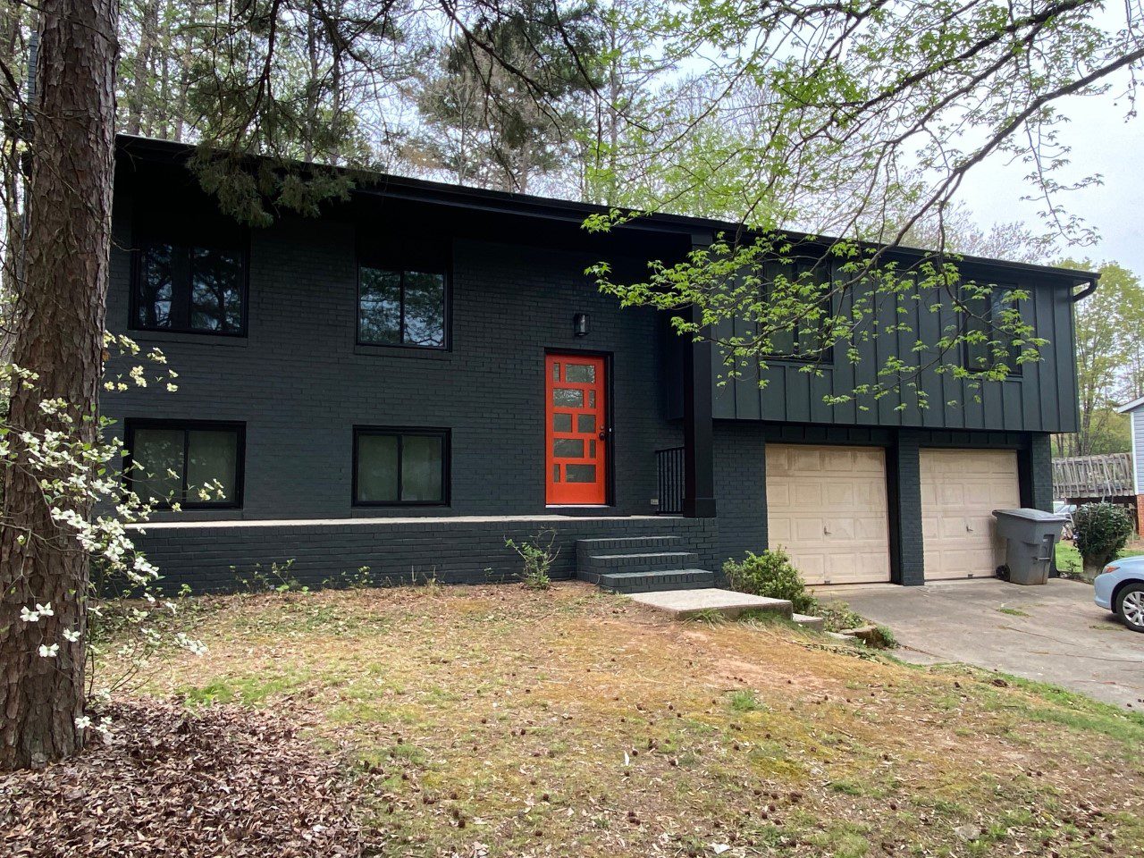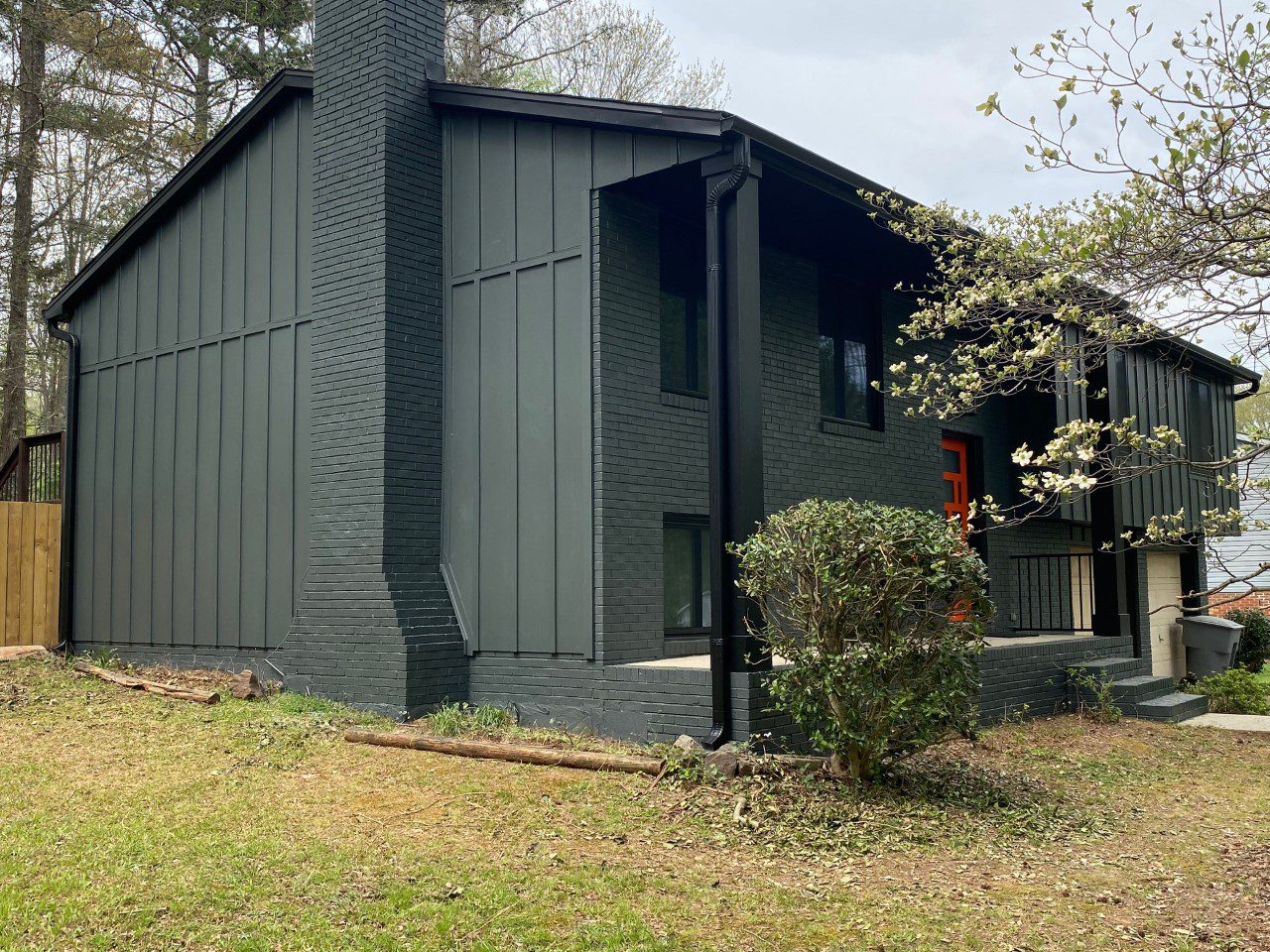 The rest of the home was brick and had that quintessential 1970s look. It’s amazing what a little paint will do to modernize old bricks. We painted the brick in the same color as the siding, so it blends seamlessly and creates a dramatic impression.