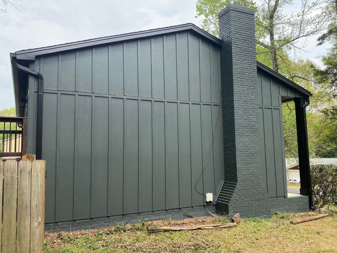 The new siding installation was vertical in a board and batten style. Board and batten became popular hundreds of years ago. The battens, which are the thin vertical pieces, actually covered up the seams. In modern installation, they are decorative in nature.