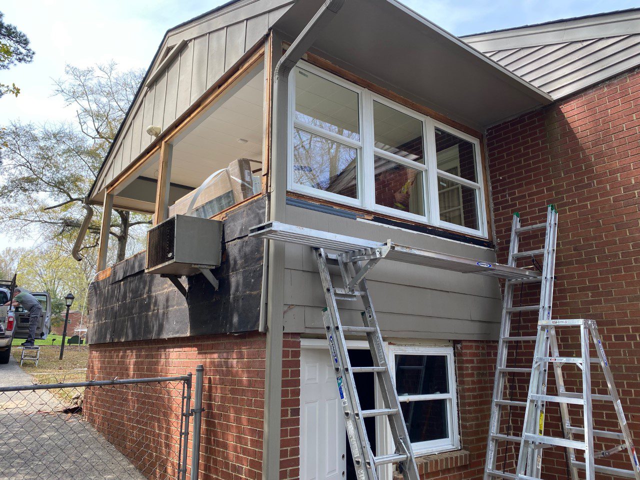 We completed the job by adding a few more finishing touches. First, we trimmed the gable at the opposite end of the home to match the sunroom side, providing a cohesive look for the house. New soffit and fascia were also part of this project. Replacing the soffit and fascia wasn’t only for aesthetics, as we painted it to match the siding; it also protects the home against the elements.