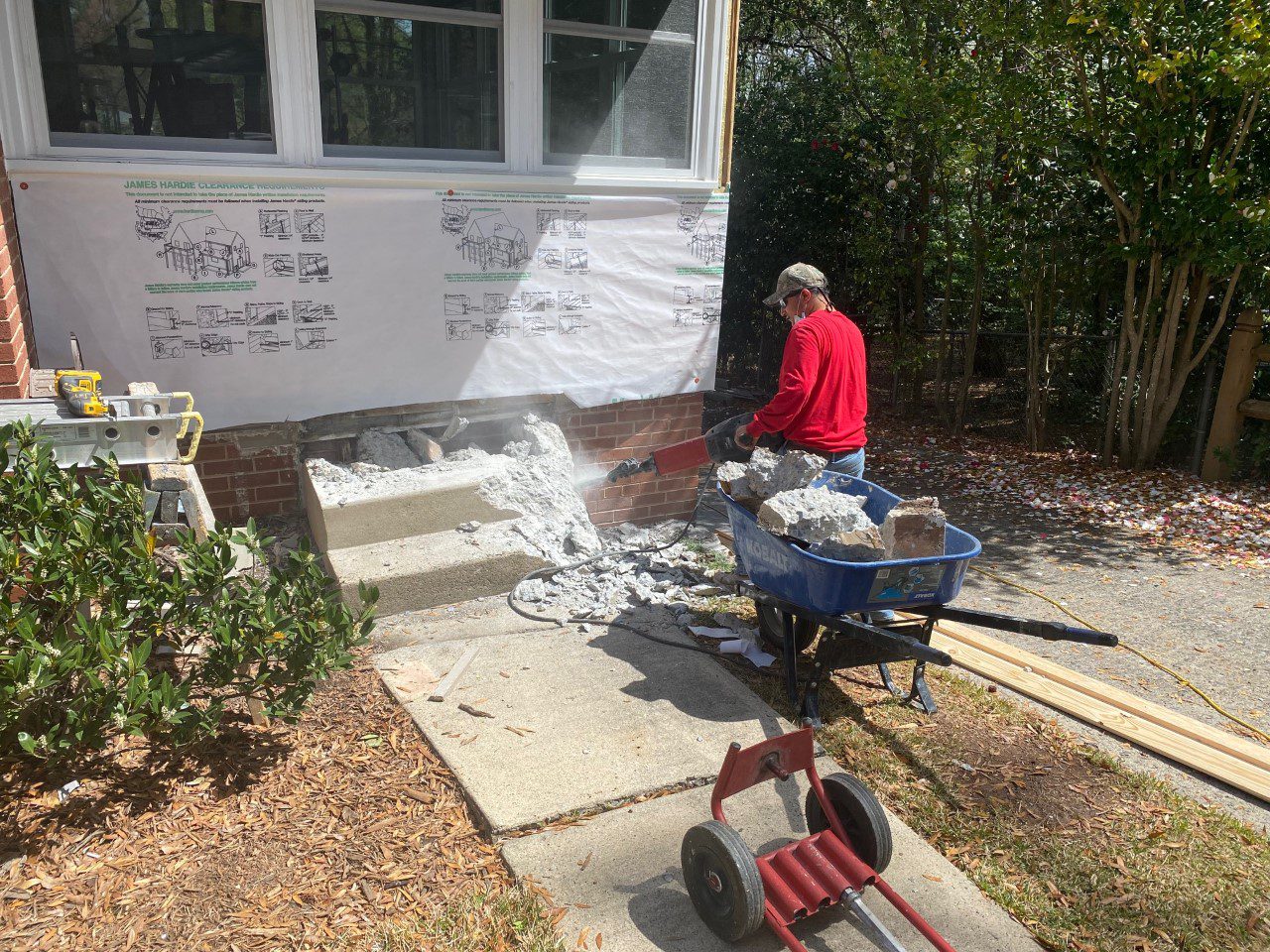 As you can see from the before pictures, the porch addition had stairs leading in from the outside and old “jalousie” windows. We began by removing the stairs. The stair removal was necessary so that access to the new room was within the home, so it flowed with the rest of the layout.